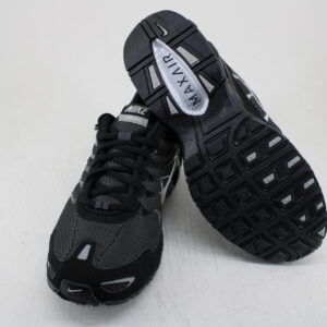 Tenis Nike color negro, plateado (Anthracite/Metallica Silver-black), tacón ancho, puntera abierta, ligero, con cordones, tipo de zapatillas de ciclismo, zapatillas deportivas, no resistente al agua , amortiguación de la plantilla Air Max de moderado a máximo, tipo de puente cushioning.